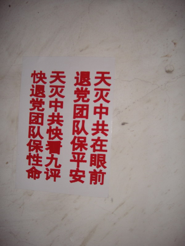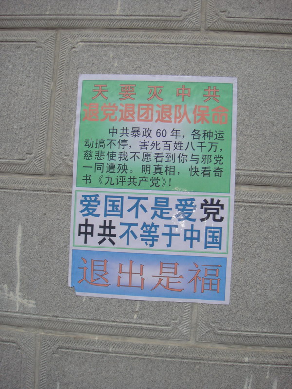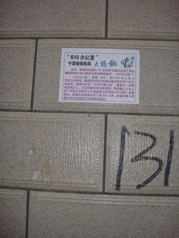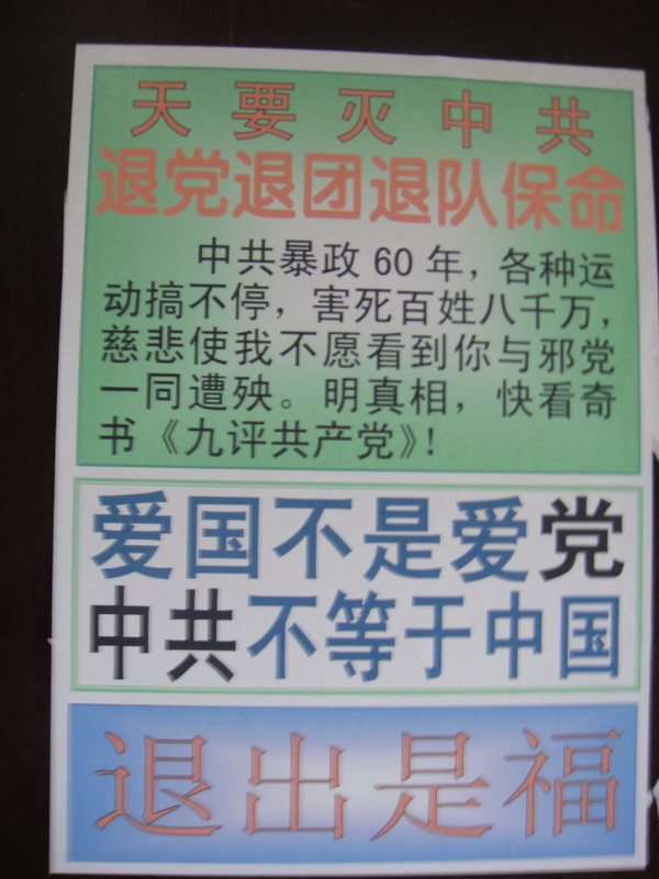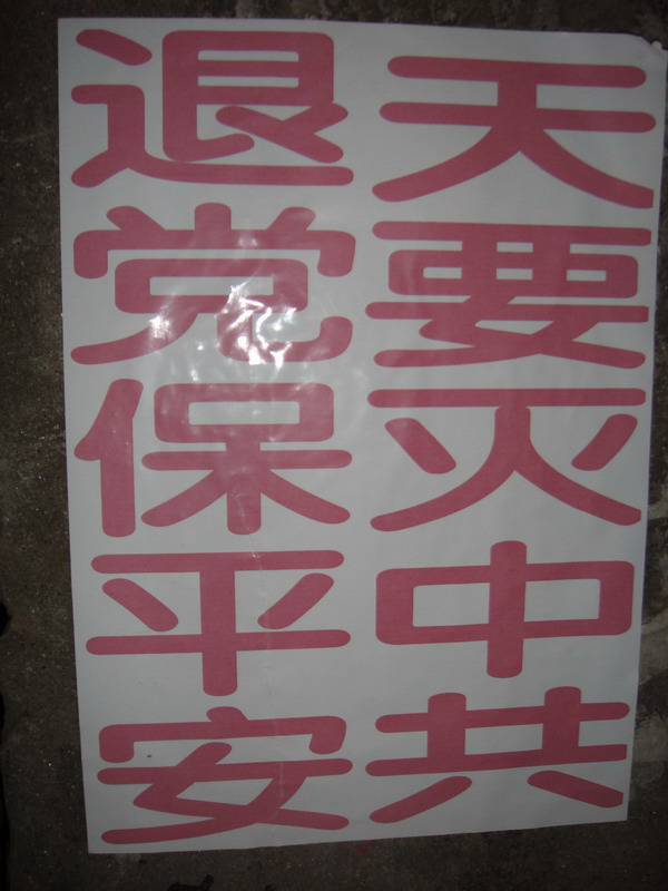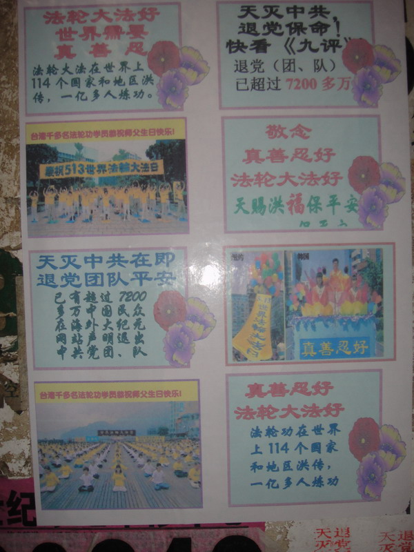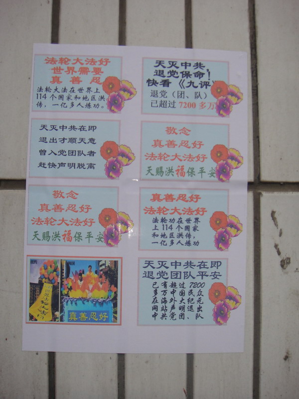 图片:华北某市出现大量法轮大法真相条幅和资料