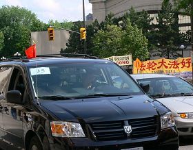 ![]() 胡锦涛车队抵达总督府时,到处是法轮功的反迫害呼声 |