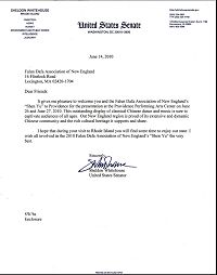 素有“海洋之岛”美称的罗德岛州政要不受干扰,在演出前夕纷纷致函主办单位新英格兰法轮大法学会,表示欢迎神韵艺术团到罗州演出、恭贺神韵艺术团演出圆满成功并给予褒奖。