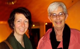 ![]() 教育艺术展的组织者博含(Denise Bohan)与母亲一起观赏神韵晚会 |