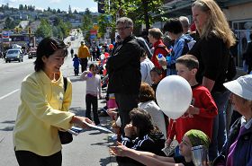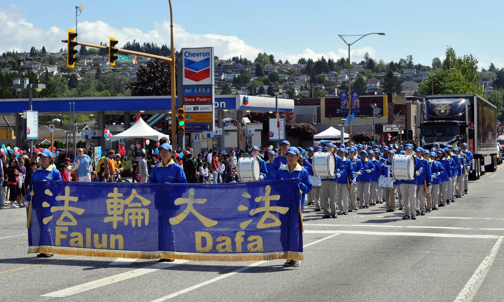 ![]() 法轮功学员参加加拿大本那比市脱帽节游行 |