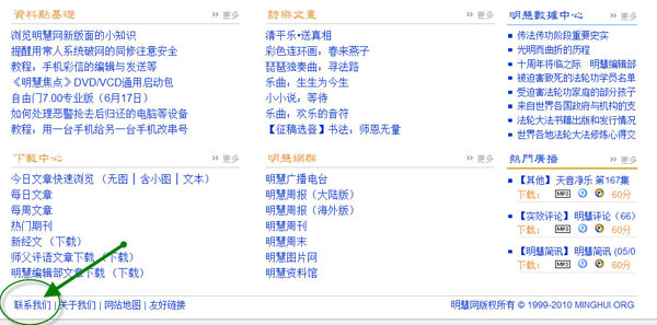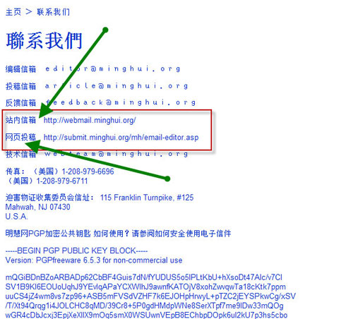 新的明慧版面上,看不到“站内信箱”的链接,这时候想一想:“站内信箱”主要是用来和明慧编辑部联系的,所以到新版面主页的顶部和底部看一下,“网站地图”,或者直接找到“联系我们”(这里的“我们”当然是指明慧了),点击进去后,就找到了“站内信箱”(https://webmail.d2s3ombhnov3zf.cloudfront.net/)。“联系我们”里还列有其他常用的明慧编辑部信箱等。