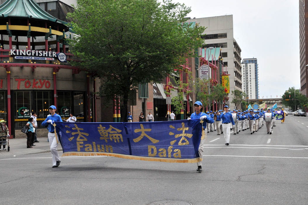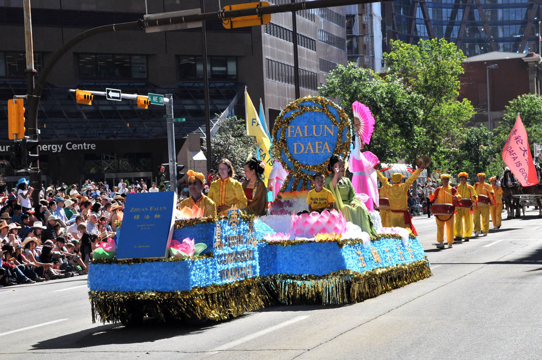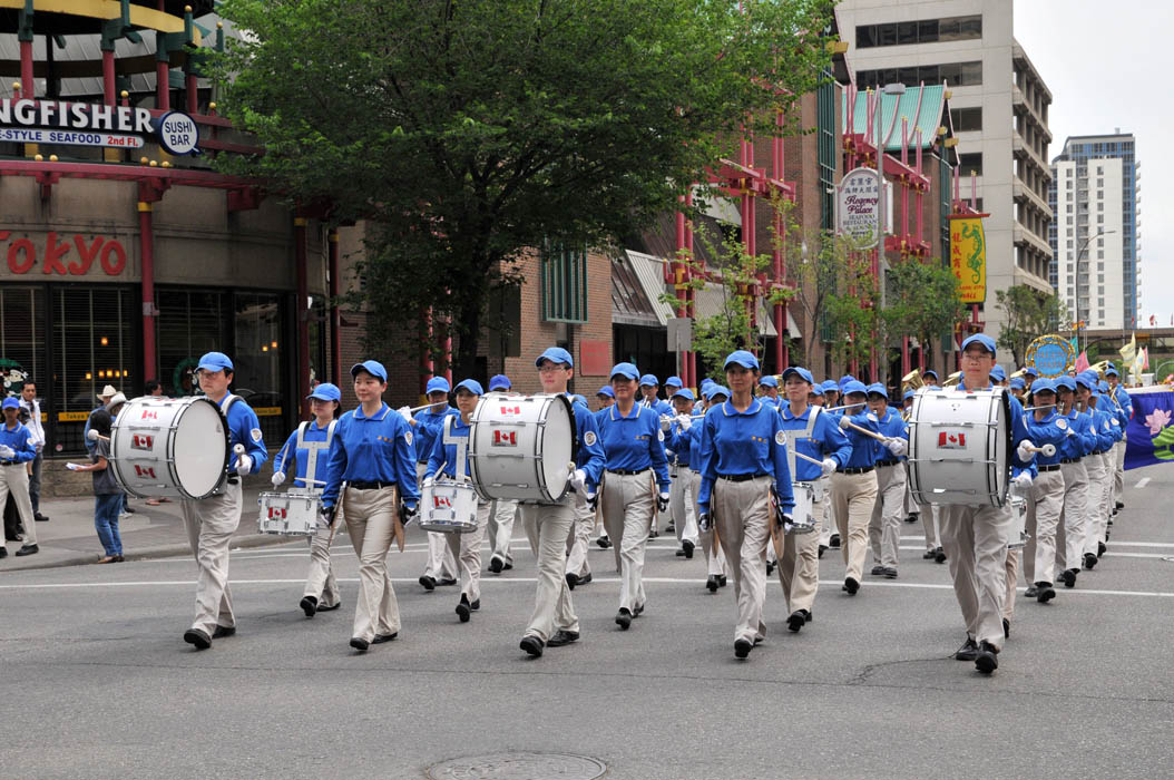 这支由法轮功学员组成的天国乐团受邀参加了卡尔加里牛仔节的游行,以及十日在中国城举行的盛大游行。