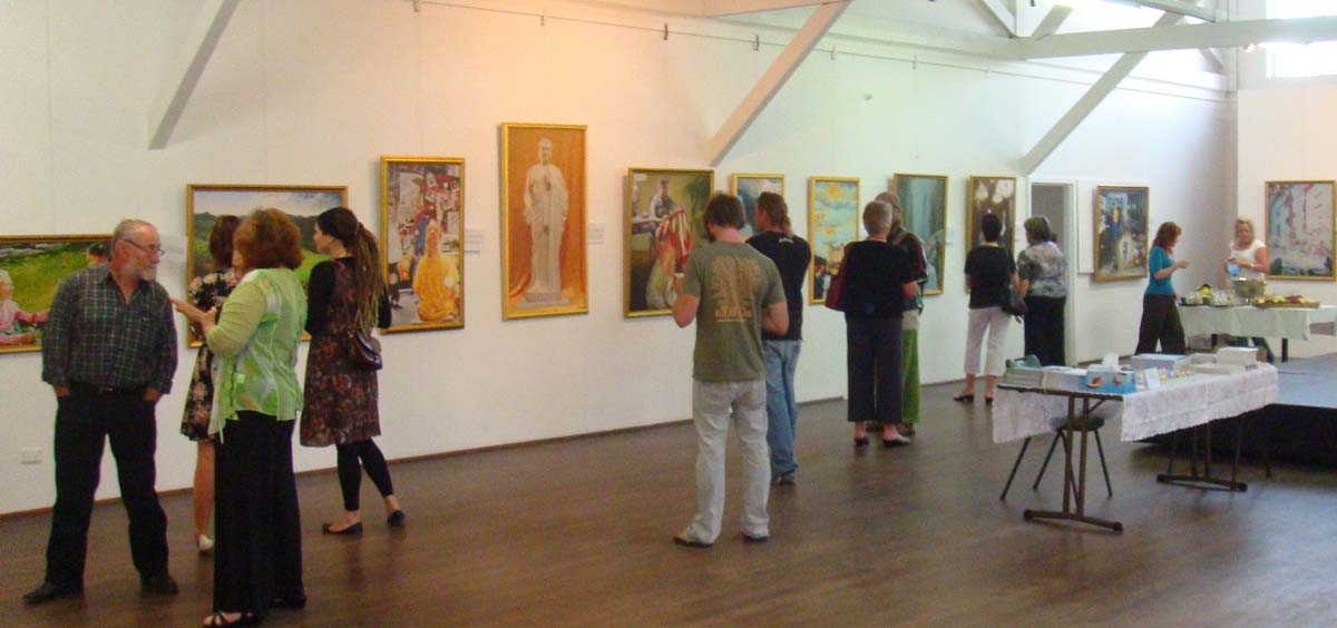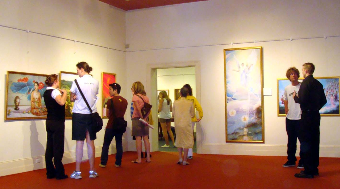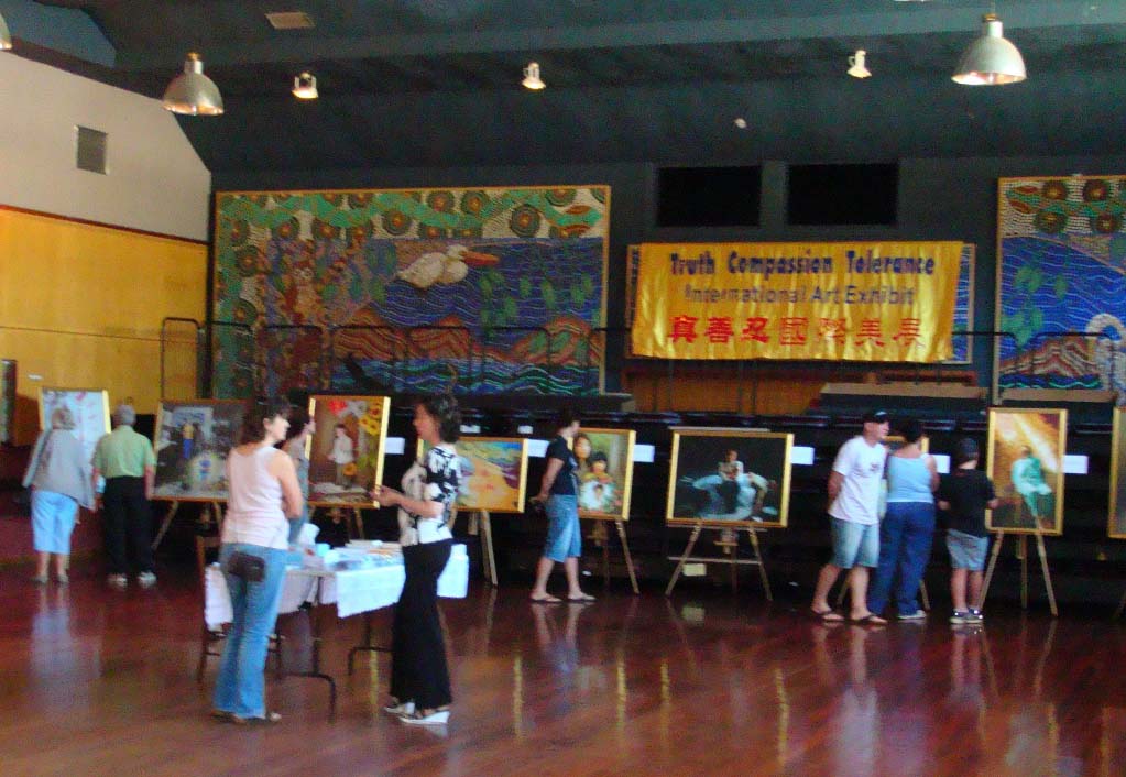 在Esperance镇,美展是在当地一个艺术馆举办。第一天晚上主办单位特地举行开幕式,并备有西式点心招待来宾,他们邀请当地艺术界人士共计三十多人参加,人们看完美展,认识了法轮功,了解了真相,结束时竟然有很多人要学功。