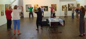 所以在接下来几天中,学员们开始在美展现场举办学功班,利用每天下午美展结束后介绍法轮大法及教功,离开时留下一些资料并成立了炼功点。后来在其他两个市镇也以同样方式教功,又成立了两个炼功点。这次的美展人们一共请购了七、八十本法轮功书籍及教功光碟。