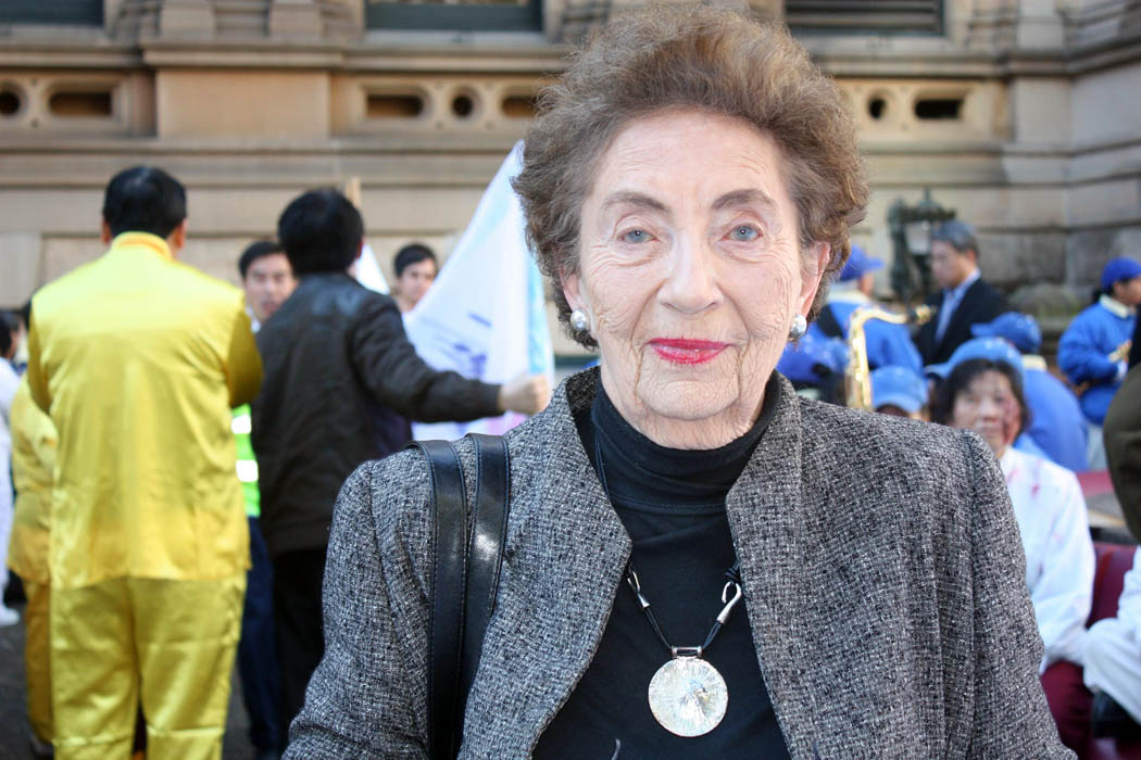 澳洲人菲舍尔女士(Ms. Fischer)十七岁时,只是为了喜欢唱歌跳舞就不懂事地加入了当时在澳洲的共产主义组织。当她十九岁时,澳洲人开始选择要还是不要这个组织,她选了不要共产主义组织,四年后就看到这个共产主义组织消失了。菲舍尔女士感慨地说:“我们应该制止这场迫害,应该在中国实行民主化,让人有信仰自由。”她还表示非常高兴看到这么多的正义人士在这里聚会游行来制止迫害。