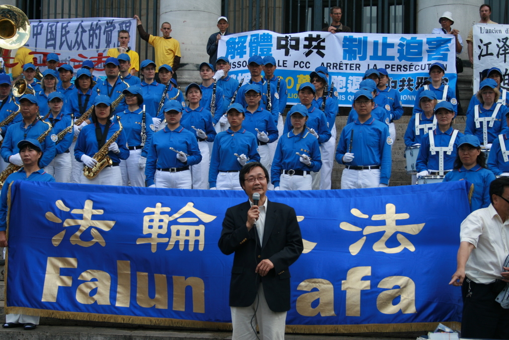 欧洲法轮大法学会负责人吴文昕先生的发言中说:“中共对法轮功的迫害已经是第十一个年头了,所以我们要呼吁、要提醒所有的人们,对法轮功的迫害仍然在进行中。”
