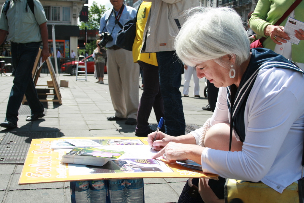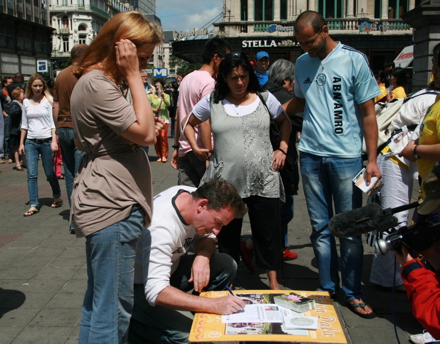 下午一点开始的大集会在布鲁塞尔市中心(证券交易所前空地)最繁华路段进行。集会中,比利时法轮大法学会负责人尼古拉斯先生宣读了来自欧洲议会副主席等政要支持法轮功、反对迫害的信函,他们对此次活动表示了关心和支持。国际大赦中国问题的负责人多米尼克女士也到场发言。