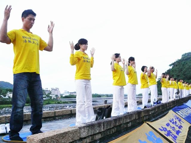 ![]() 台东知本温泉区河堤上,法轮功学员展示功法 |