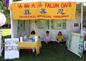 ![]() 俄勒冈州世界韵律文化节上的法轮功展位 |