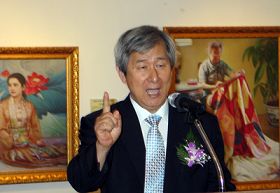 ![]() 南韩法轮大法学会会长权洪大六月二十八日在韩国新闻中心首尔画廊举行的「真、善、忍国际美术展」开幕式上,讲述法轮功遭受中共迫害的故事。 |