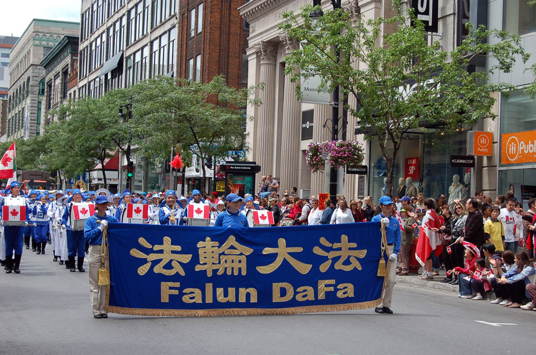 游行的队伍过去一多半才赶来的麦克唐纳说:“五分钟前才赶到”。他说他是一直住在蒙特利尔的老加拿大人了。问到他有没有看到穿着蓝白相间的古装的华人队伍时,他说:“看到了,但不知是哪来的,很整齐。”当得知是由信仰“真、善、忍”的法轮功学员组成的方阵,而信仰“真、善、忍”在中国却受到打压迫害时,麦克唐纳大声说到:“啊,真的吗?可是今天的(天国乐团)队伍,我觉得带来了崭新的文化。”