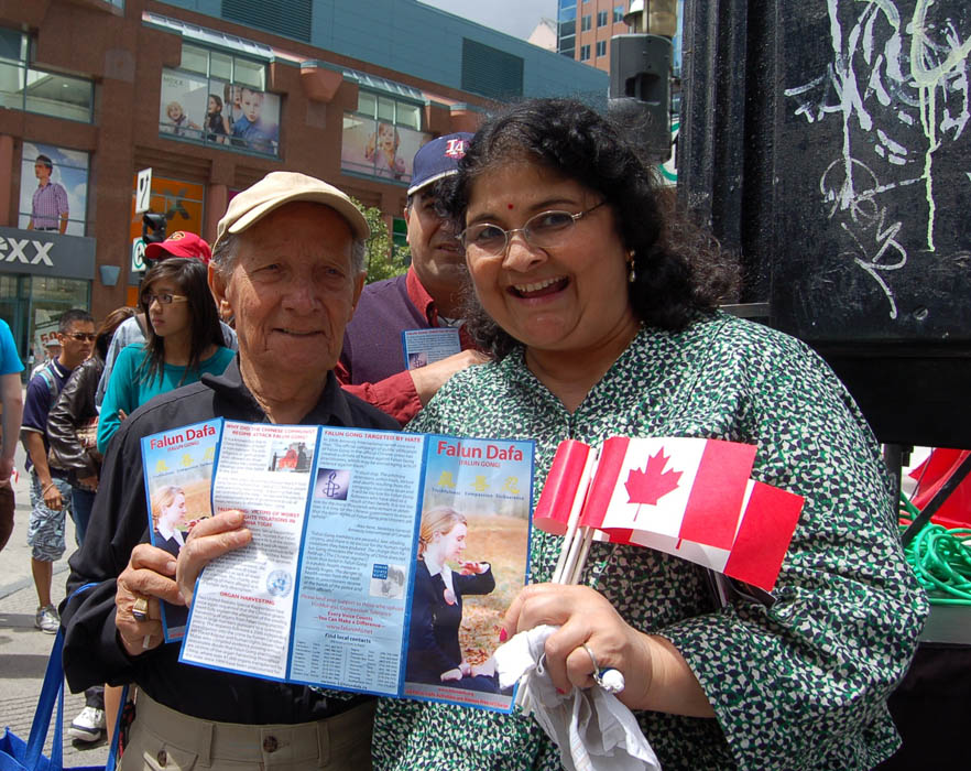 二零零六年七月一日,加拿大皇家联盟副主席苏珊•多娜莉女士特意赶到游行结束的地方,对法轮功学员说:“你们是今天最令我印象深刻的团体。”组委会负责人则表示:“谢谢你们,希望你们明年再来。”