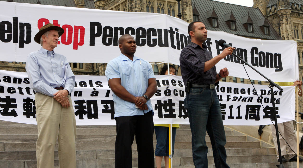 “同一个自由世界”国际组织的发起人梅杰德•沙菲(Majed El Shafie)特地从多伦多来到首都渥太华的国会山,支持法轮功。