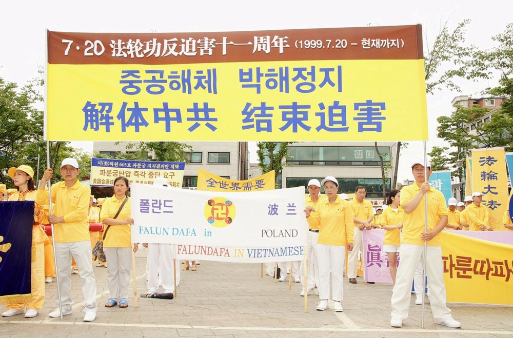 ![]() 二零一零年七月十八日,韩国法轮功学员举行“七二零法轮功反迫害十一年”联合集会 |