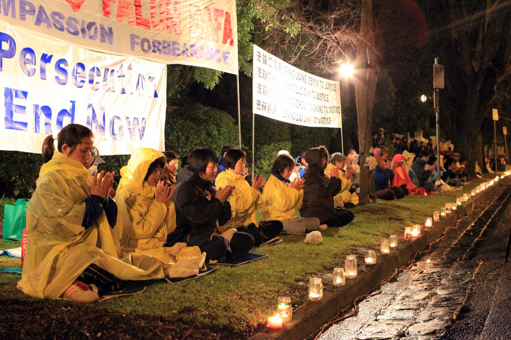 ![]() 墨尔本中领馆门前,法轮功学员在雨中举行烛光悼念活动 |