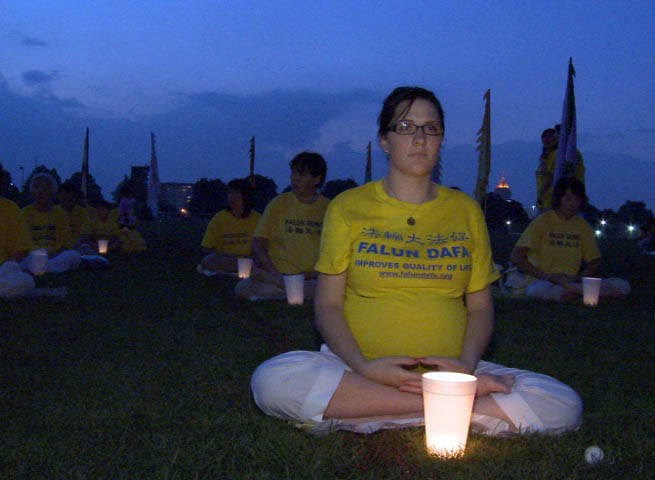 在余辉落下,大地归于平静之际,学员们捧起了一盏盏烛火,悼念被迫害致死的大陆法轮功学员们。十一年前曾在大陆经历“七二零”的莉莉女士在接受采访时说:“今天坐在这里,心情很沉重,我们是在用这种方式无声的声援大陆学员,我们和他们在一起;同时呼吁正义良知,站出来一起制止迫害!”