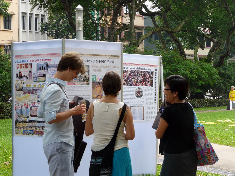 一位刚刚抵达新加坡的美国纽约青年对学员说:“我有些意外在新加坡也看到了法轮功,我曾在纽约看到过法轮功的游行。你们做的很有意义。”他感到还不是真正的了解法轮功。他表示要去看《转法轮》,这一回他会真正去了解。