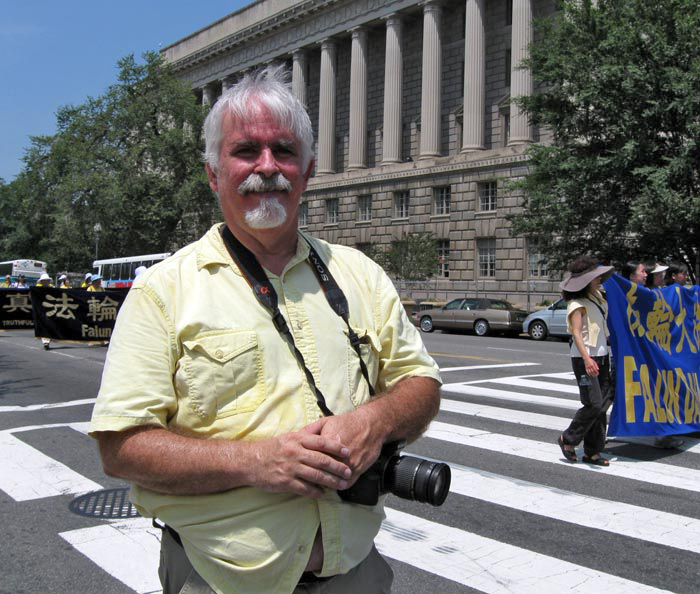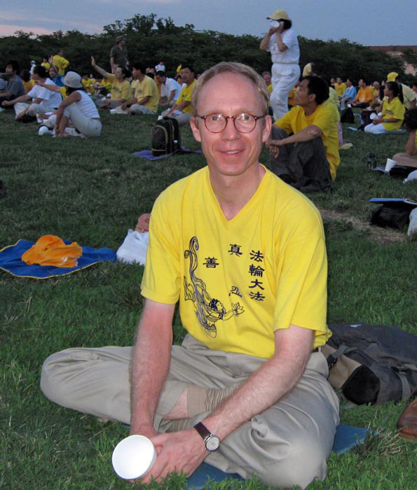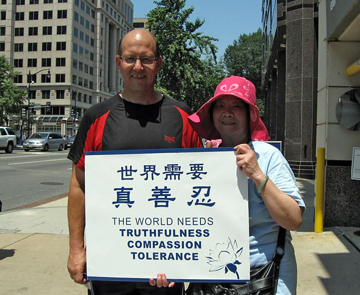 来自德国的西人法轮功学员马丁二零零二年开始修炼法轮功,说一口流利的中文,从二零零三年开始每年都飞来华盛顿DC参加这里的七二零反迫害活动。他说,十一年的迫害应该停止了,我也相信那一天不远了。