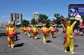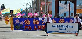 【明慧网二零一零年七月二十七日】二零一零年七月二十二日,加拿大淘金节在享有“阳光之都”美誉的埃德蒙顿(Edmonton)拉开序幕。在当天的盛大游行中,法轮功团队再度获奖,被组委会授予健康与幸福奖(Health and Well-Being Award)。