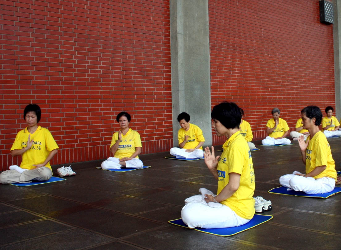 ![]() 每周这些老年法轮功学员会固定到国父纪念馆炼功弘法 |