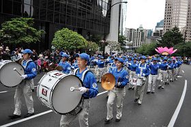 本次游行,共有一百零二个团体参加,吸引了万余民众前来观看。其中,由近百人组成的法轮大法天国乐团、腰鼓队、花车鼓乐动人,队伍壮观,令人耳目一新。一些学员在街道两侧向民众发送资料,帮助更多的人了解了法轮大法。