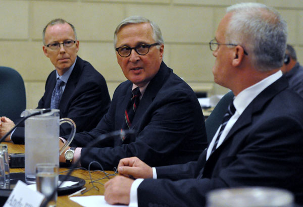 ![]() 加拿大安全情报局 (Canadian Security Intelligence Service,CSIS) 主任法登(Richard Fadden)(中)七月五日在国会公共安全委员会的一个特别会议上作证。 |