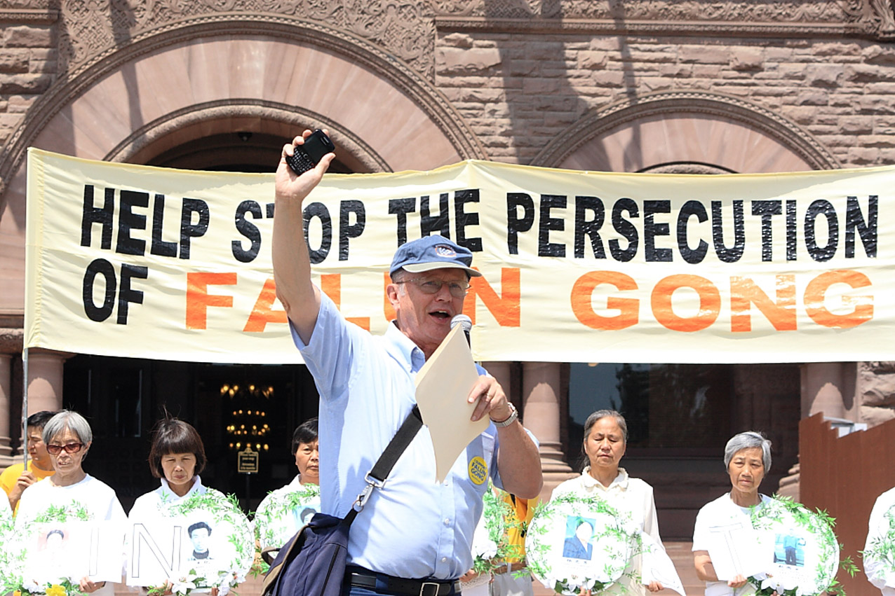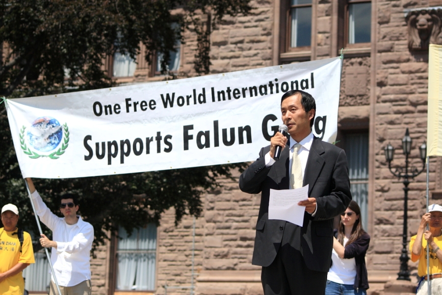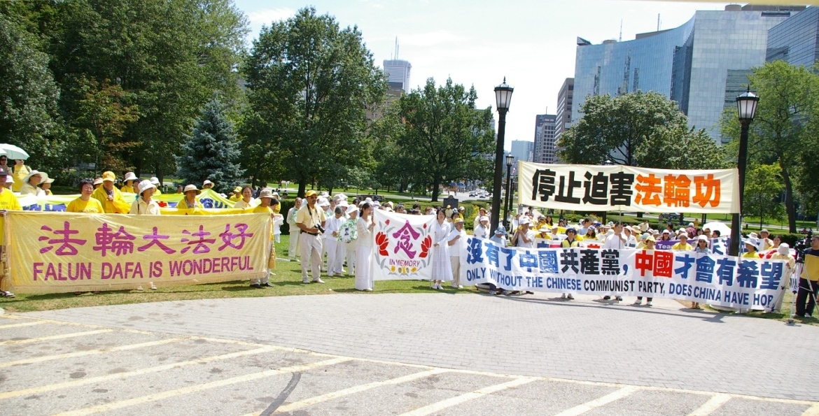 在安省议会大厦前的集会上,加拿大法轮大法学会代表说:“我们在这里呼吁制止中共对法轮功长达十一年的残酷迫害。这场迫害的理由是完全建立在谎言和欺骗的基础上的。”