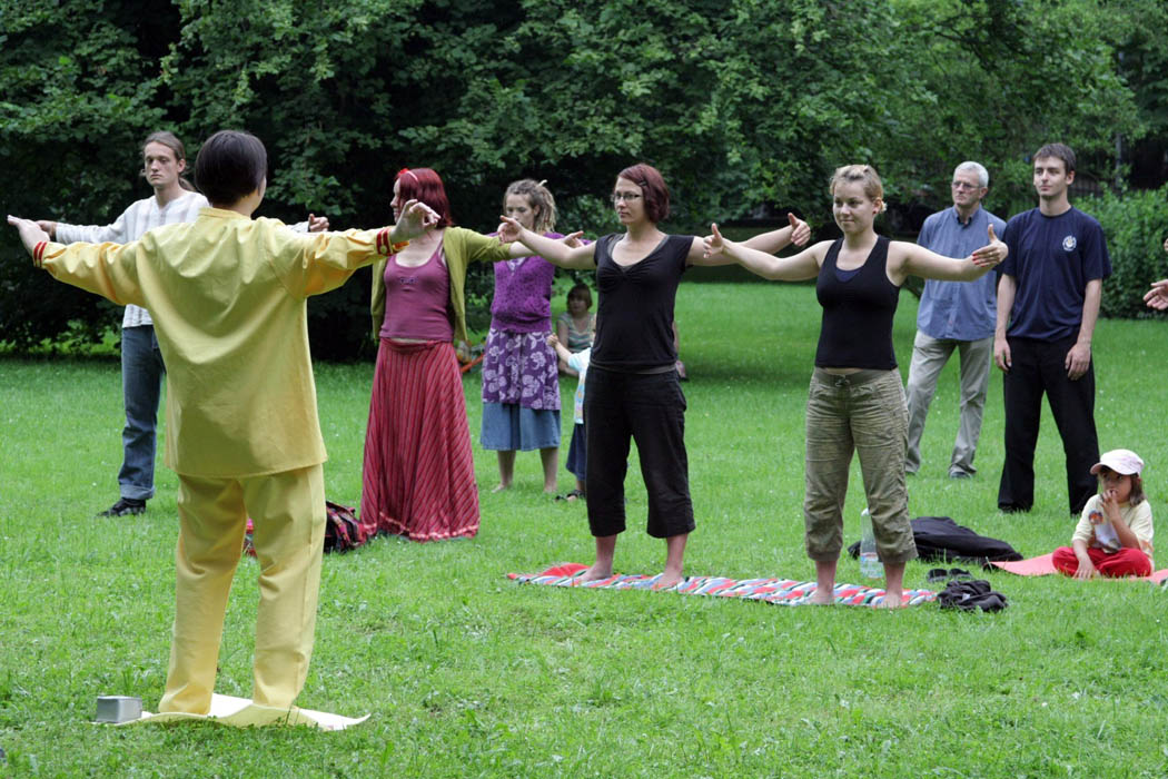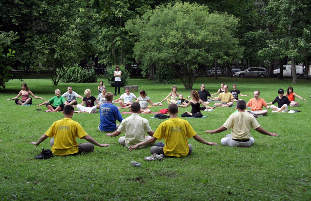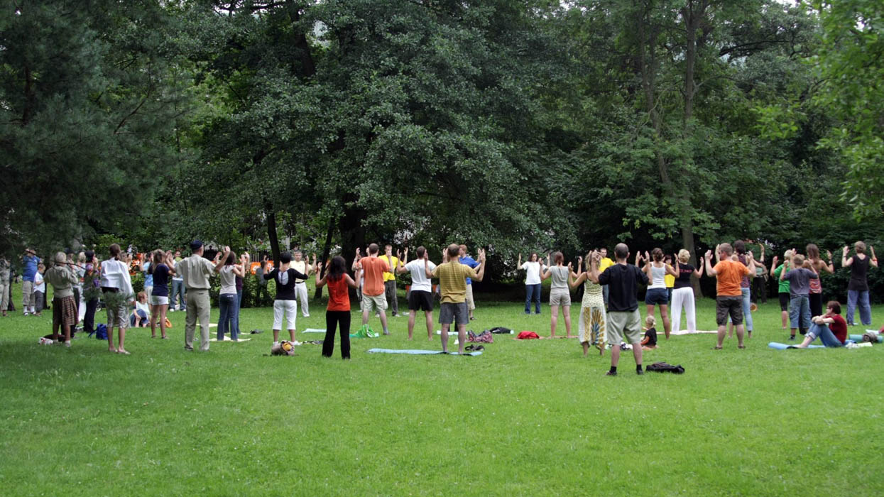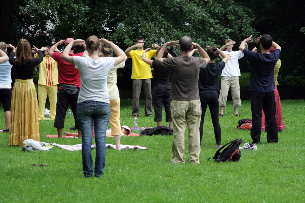 ![]() 奥利瓦公园里,波兰民众兴致勃勃的学炼法轮功 |