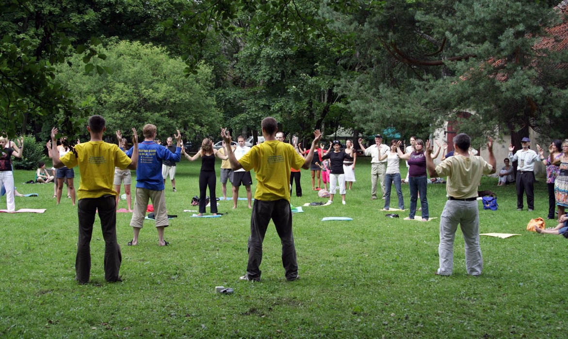同天下午,法轮功学员赶到格但斯克市,在美丽的奥利瓦公园开展法轮功教功活动。这是波兰法轮大法学会的定期炼功点,很多市民从网上获知这个周末有两天教功活动,都积极报名,早早来到公园等候。