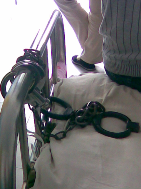 六月二十八日,绝食抗议已经三十五天的白三元,左半身麻木,右腿被铐在铁床上,左腿已肌肉萎缩,脸上的胡须很长。靖远县人民医院院长明确通知法院及有关部门,白三元已经不行了。