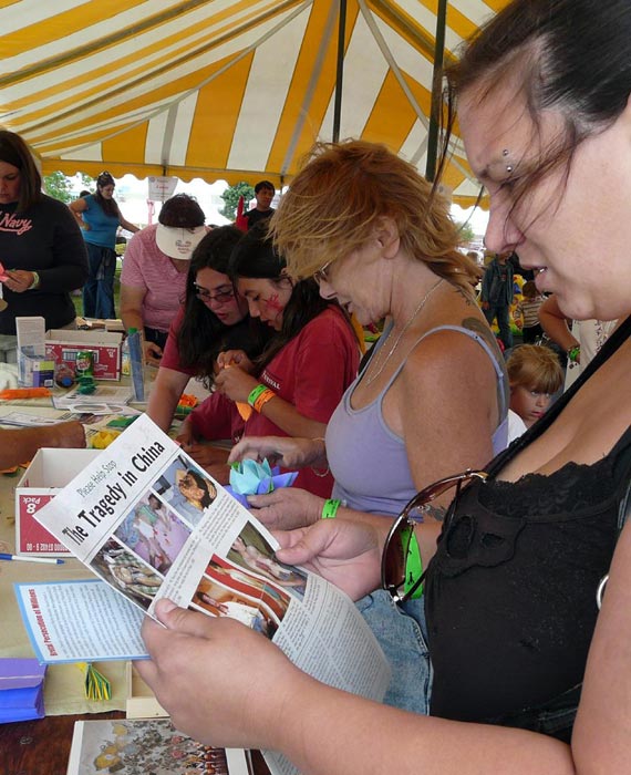一位来自马里兰的男士看到法轮功学员展位后,说他在马里兰就知道了中共对法轮功的迫害,以及法轮功学员十多年来和平理性的反迫害抗议活动。他由衷钦佩法轮功学员,并表示:“你们做得非常好,很勇敢,请继续坚持下去!”