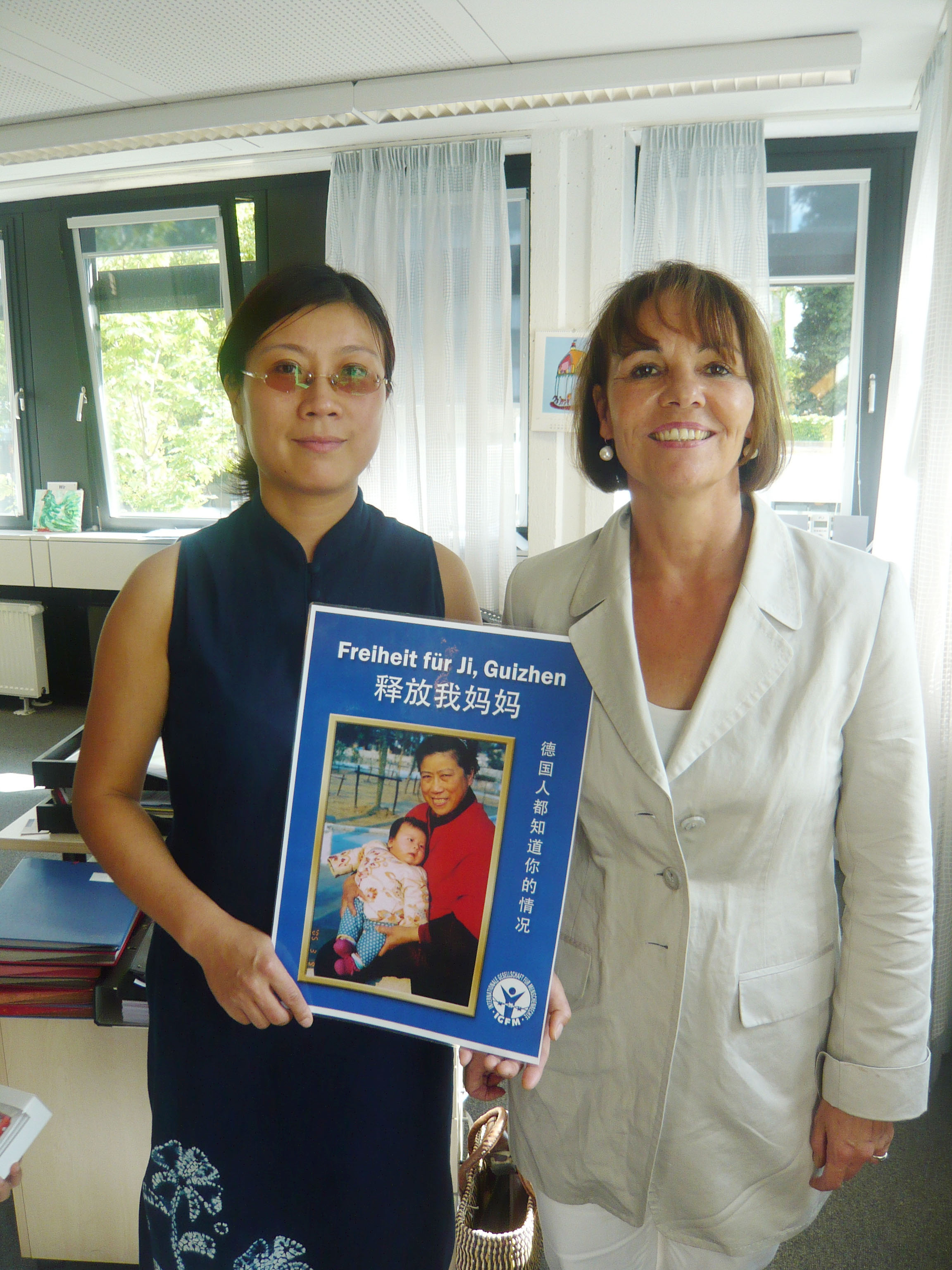 安兰向市长详细讲述了自己一家的不幸遭遇,以及母亲季桂珍正身处何种险境。另一位参加约见的中国青年王臻也为市长介绍了他在中国劳教所的经历,因他不放弃修炼法轮功,在被非法关押期间狱警对他进行酷刑折磨,致使他双腿韧带全被拉坏,直到他来到德国后才接受了置换关节的手术。
