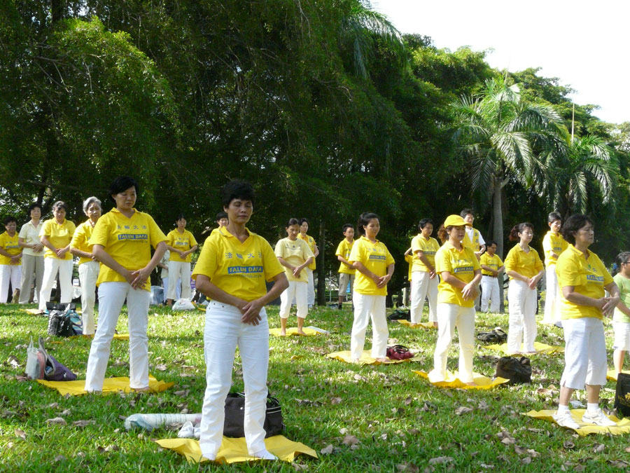 ![]() 新加坡法轮功学员在东海岸公园集体炼功 |