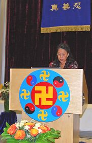 一位老年大法弟子在法会上谈了她在唐人街讲真相、劝三:退.的过程中,心性不断得到提高,用正念和慈悲对待形形色色的人的修炼体会。她说道:“经过几年在唐人街讲真相、劝三:退.,现在,不管遇到什么样的人、说什么,我都不会放在心上,心里很坦然,心态也稳定了。不管别人说我什么,我都不会在乎,只是一心一意的去救他们,为了他们生命的未来好。”在这样的心态下,有的人以前拒绝听真相,包括大陆的公安人员,后来也听了真相,做了三:退.。