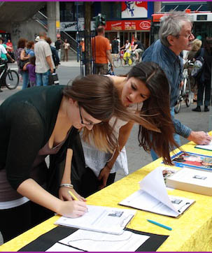 信息日活动刚一开始,就有位老妇人来到展台前在征签表上签名,她介绍说,她曾在共产党统治的东德生活过,并曾因政治原因被囚禁了五年,被囚期间由于遭受酷刑折磨而失去一个肾脏,直到今天仍然无法摆脱当初酷刑留下的伤痛。因此,对于当今中共的残暴性,她毫不怀疑。这位老妇人自己签过名后,又拿着征签表格穿行于附近的店铺和街道上,帮忙征得了三十个签名。
