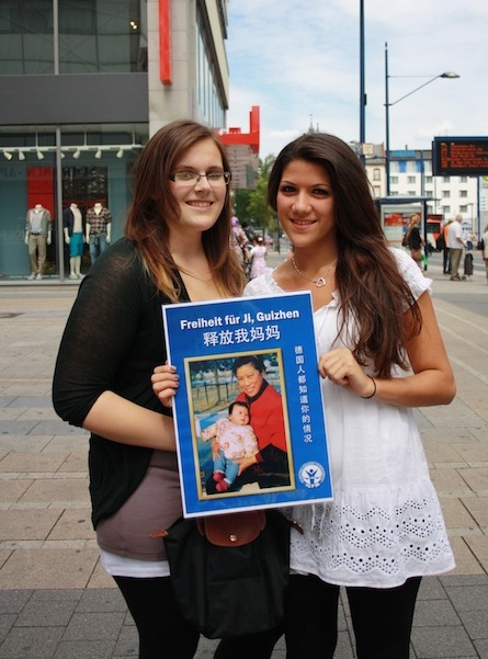 当天,奥芬巴赫市的女市长西蒙(Birgit Simon)也来展台前留下了签名,她也读到当地报章的关于季女士遭受迫害的报道。许多行人还要求手持有季女士照片的画板留影,并希望将照片在法轮功学员的网站上公开发表,以此向中共迫害法轮功的责任者表明:“我们知道季女士在遭受迫害,我们要求立即释放季女士!”