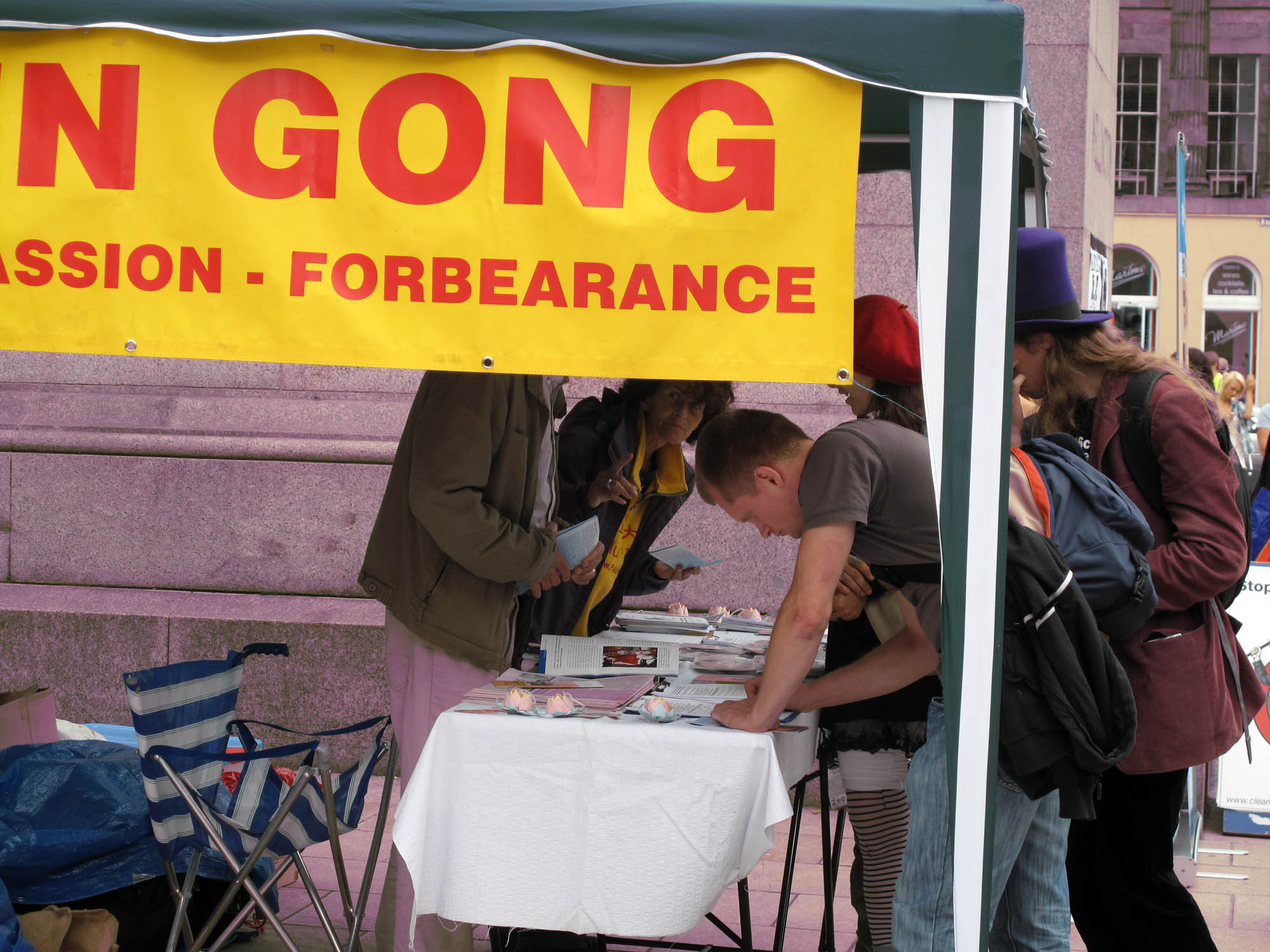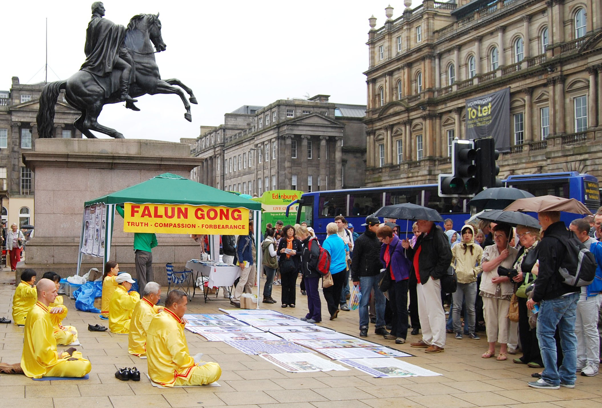 ![]() 二零一零年爱丁堡国际艺术节期间,法轮功学员在闹市街头炼功 |