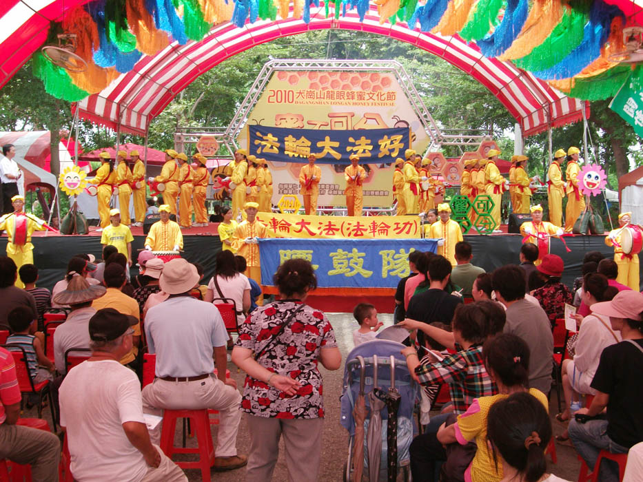 八月一日,主办单位中午安排由一群修炼“真、善、忍”的法轮功学员组成的唐鼓队带来极具震撼力的表演,开演前由任职校长的杨姓学员介绍自己身心受益于法轮大法及大法弘传全世界一百多个国家与地区的盛况,受到民众的热烈欢迎。