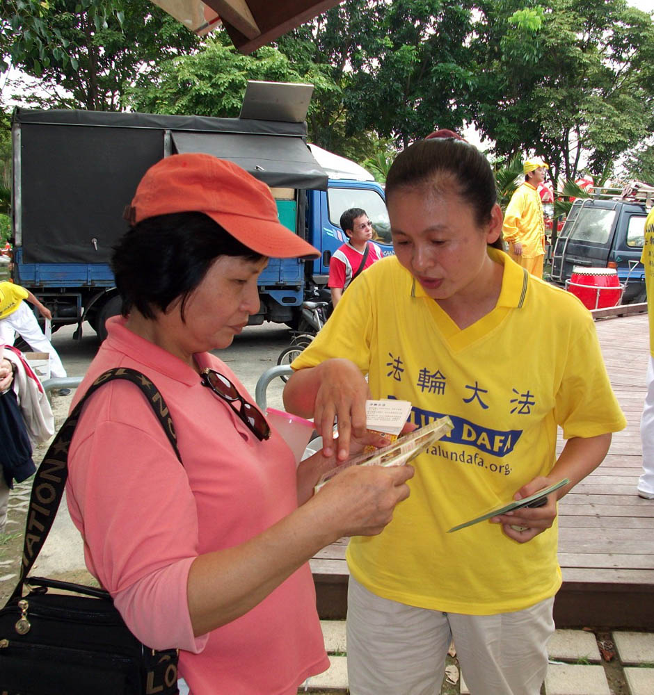 ![]() 市民详细听取法轮功学员的介绍 |
