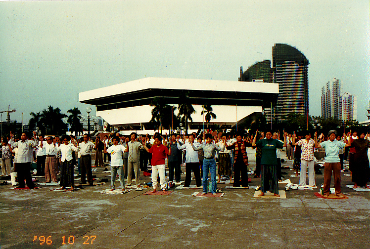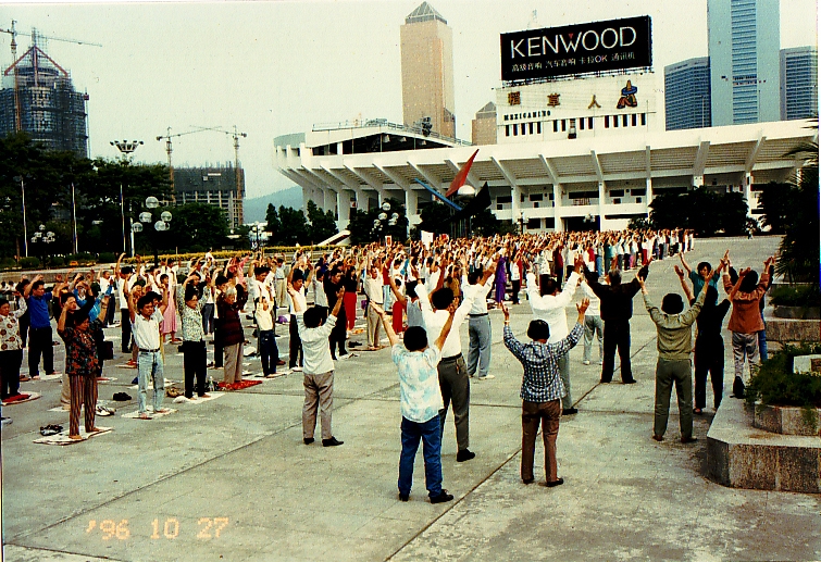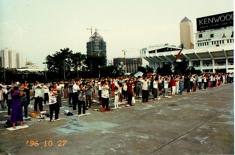 ![]() 1998年12月27日在广州法轮功学员集体炼功 |