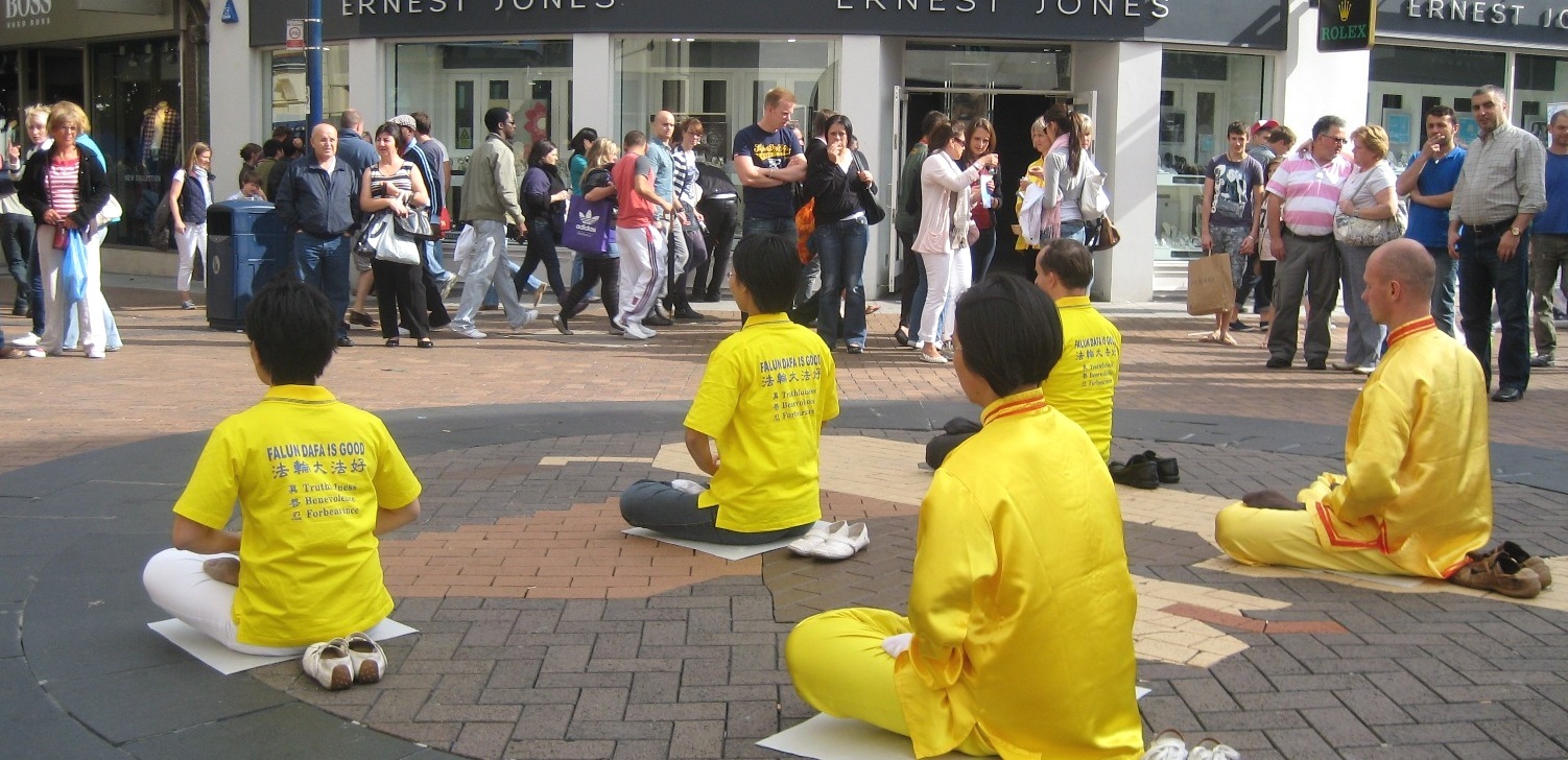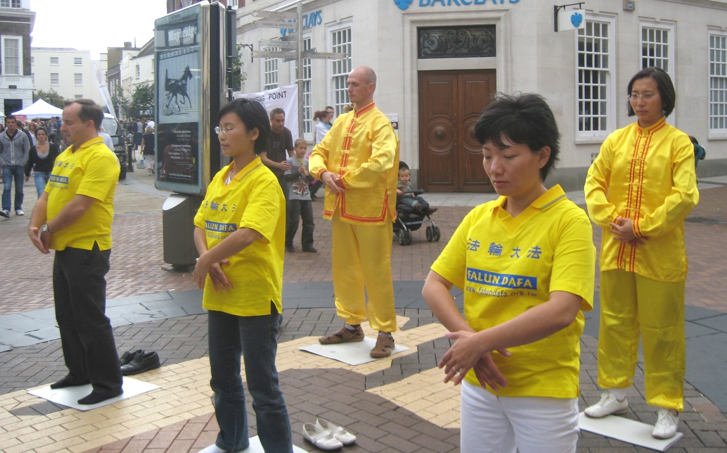 法轮功展位设立在集市广场(market square)人来人往的中心地带。许多人被祥和舒缓的功法吸引而停下脚步,认真观看。许多人愉快地收下真相传单,不少人表示有兴趣参加每周举办的义务教功班,学习功法。一个女孩表示,在得知法轮功的根本法理是“真、善、忍”后,她更急切想要学习功法了。