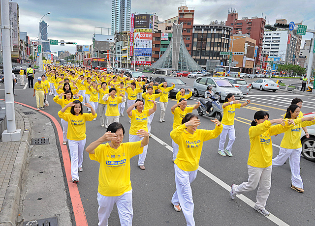 ![]() 法轮功学员精神采奕奕演示五套功法 |