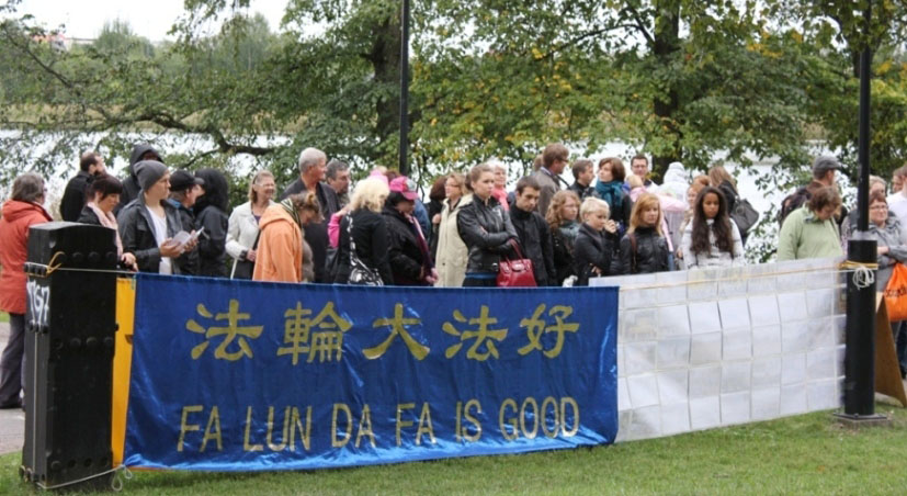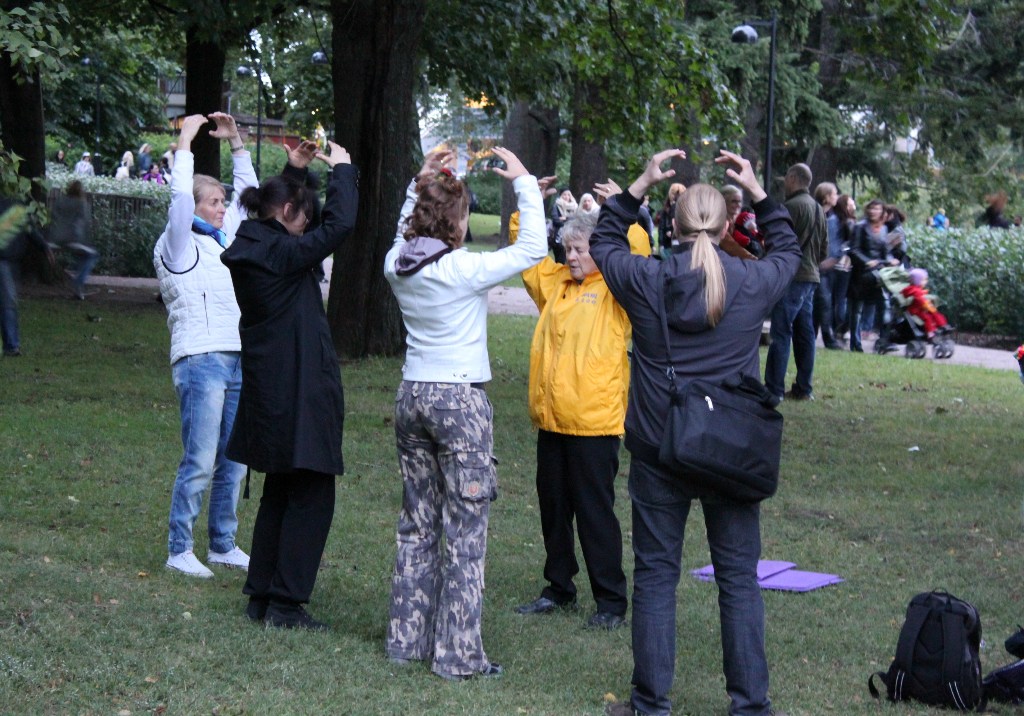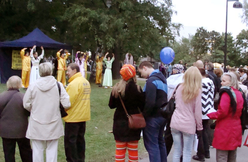 ![]() 赫尔辛基“艺术之夜”,游人观看法轮功功法演示,了解真相 |