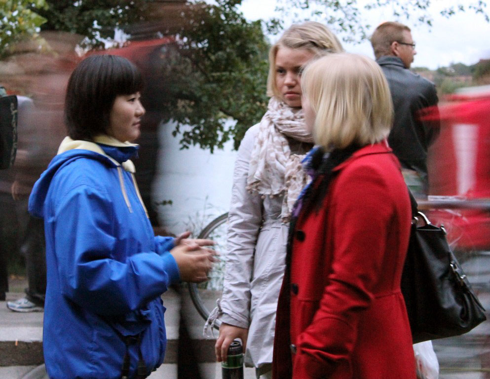 女孩瑞娜(Riina)说:“我相信在中国发生的这件事。以前我也听过我父母讲,共产党怎么迫害有信仰的人。你们做得对,我支持你们。我会把今天我看到的告诉我的家人及朋友。”听说学员在征集签名反迫害,她马上就签了名,还让她的朋友也一起签。签完后还拉着朋友一起听学员讲法轮大法的美好。