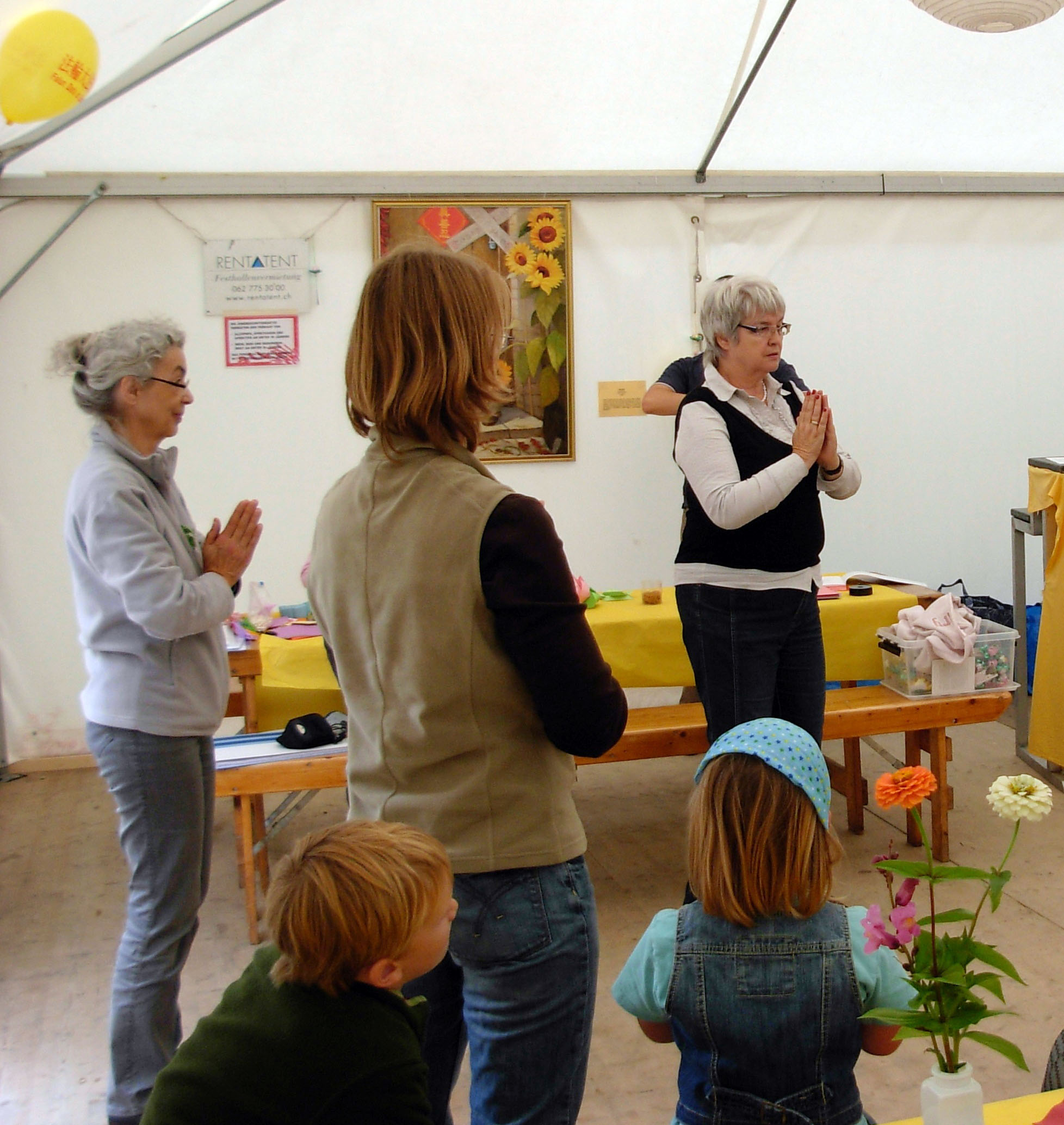 布克斯是在瑞士阿劳市附近的一个小镇,二零一零年是该镇建立二百周年,因此从五月至九月底,每周周五,周六都会在搭建的文化帐篷里举办各种文化活动。法轮功学员带来的是对法轮功以及中国传统文化的介绍。在十八日的活动中,人们除了可以学炼法轮功外,还可以参观法轮功学员的油画作品,得到写有自己中文名字的书法作品,以及学折纸莲花。