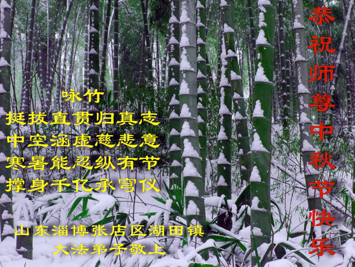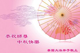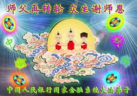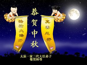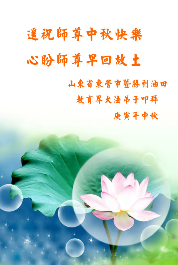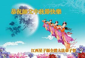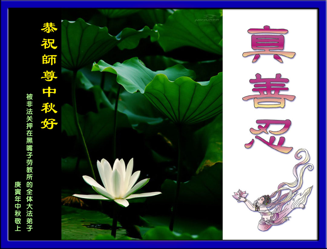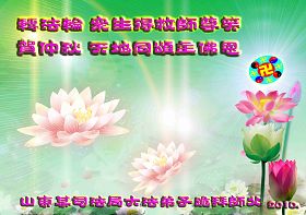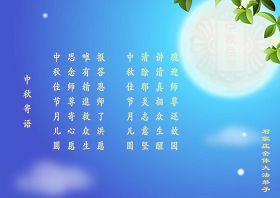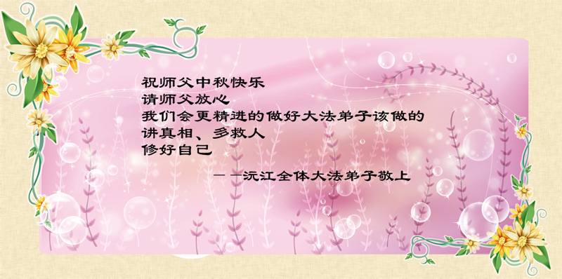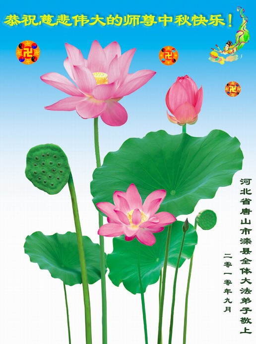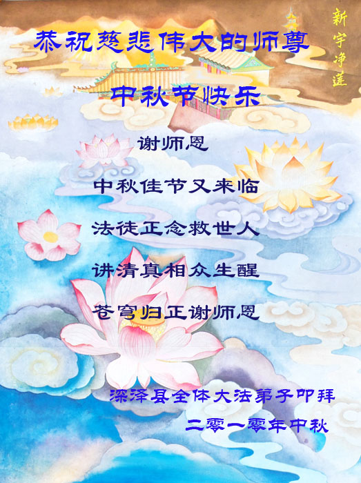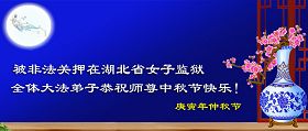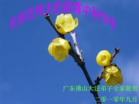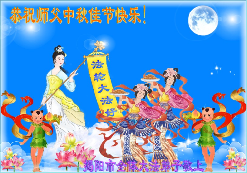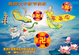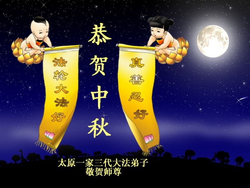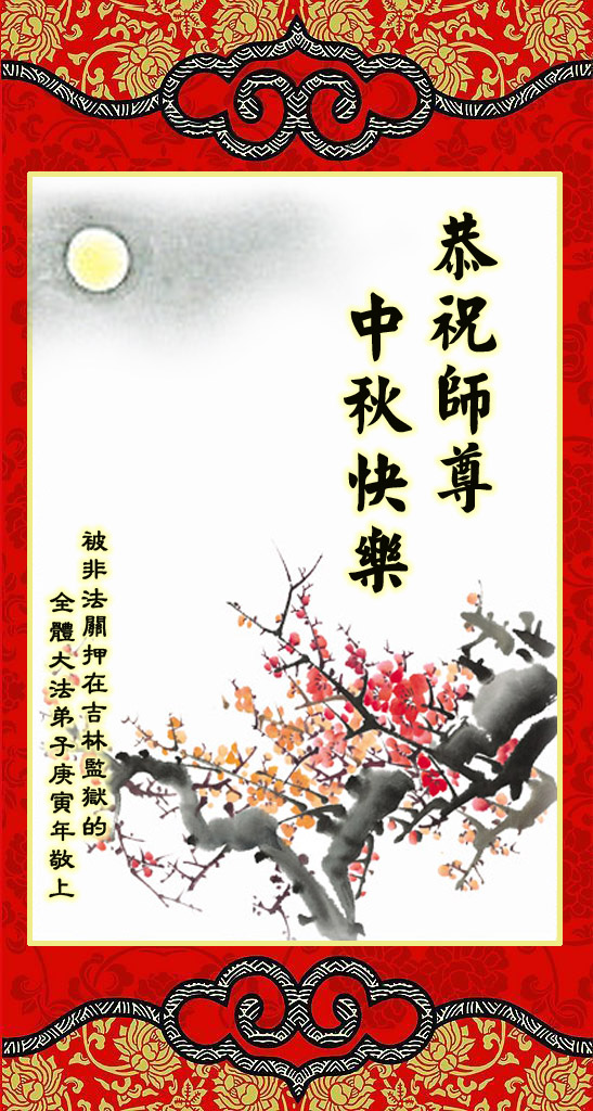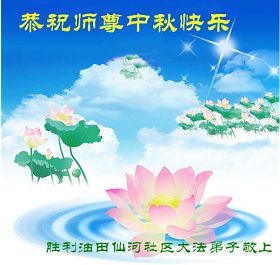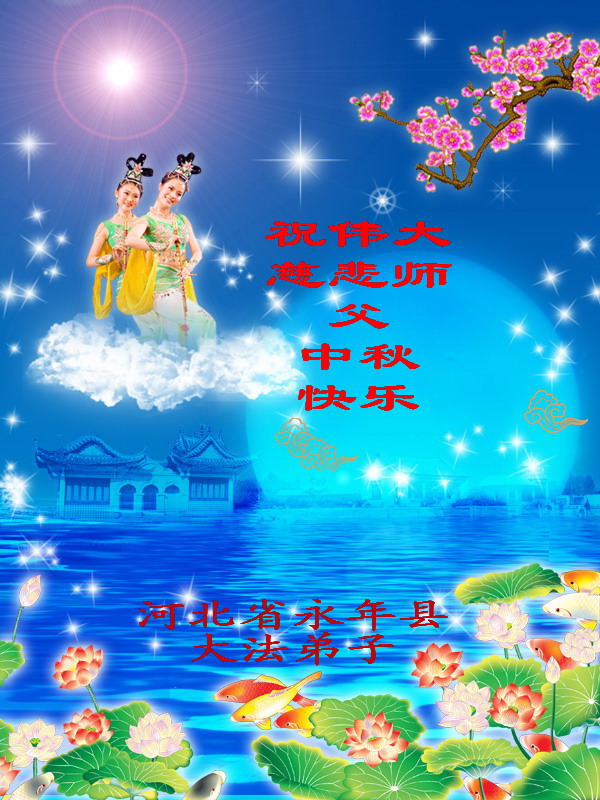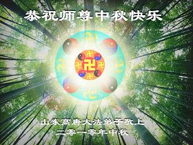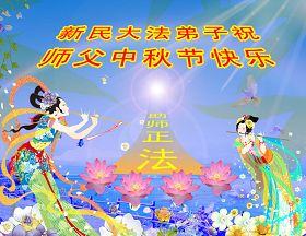 一年一度的中秋节又到了,大法弟子遭受残酷的迫害走过了十一年,很多同修有家不能团圆,或身处牢狱,或四海为家居无定所,还坚持讲真相救世人。我们伟大的师尊为了我们承受之多,是我们无法想象的。值此中秋节到来之际,衷心祝愿师尊能少操点心,没做好的弟子做的更好,更多被蒙蔽的世人能明白过来,从而得到救度。世间清气荡涤邪恶,大法弟子不应受到迫害的。