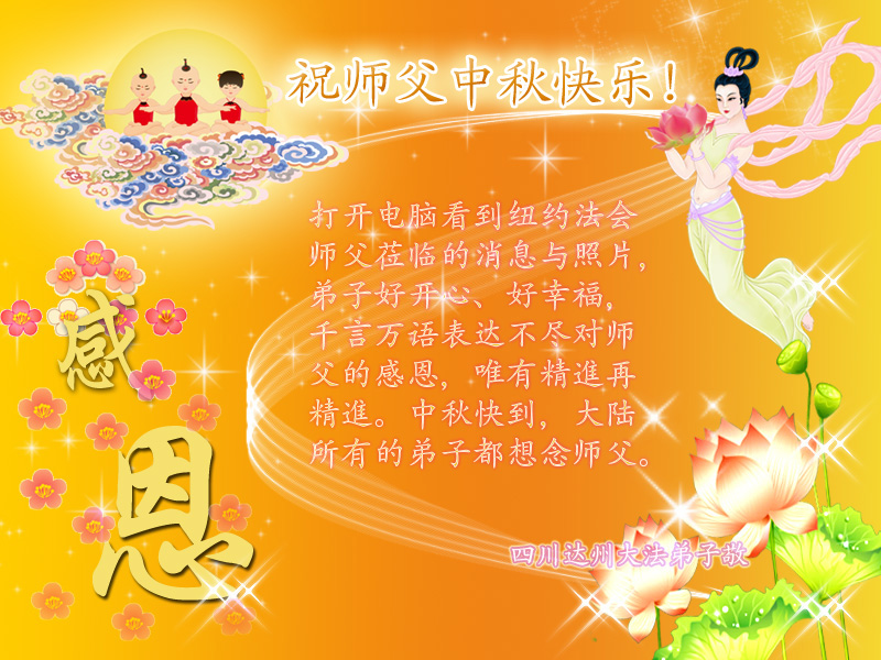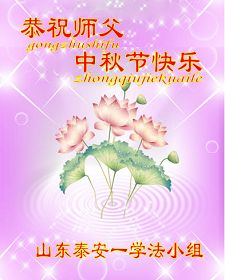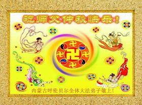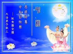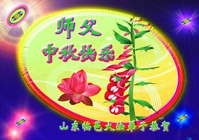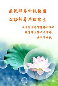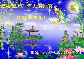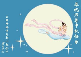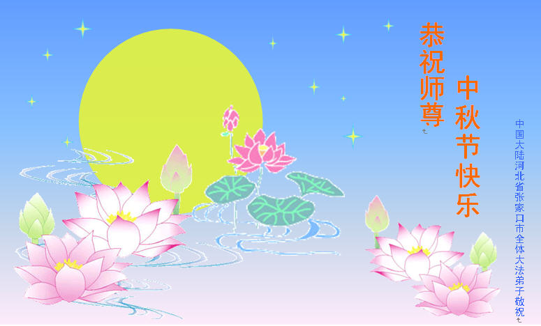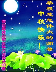 师尊好!又是一年的中秋佳节,一到这时我们大陆大法弟子都更加的想念师尊!能成为大法弟子,师尊的弟子,我们感到非常荣耀和幸福。我们会理智坚强的走好证实法的路,找出不足、相互配合、共同精進。让师尊多一份欣慰,少一份操劳。