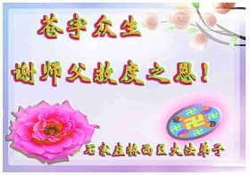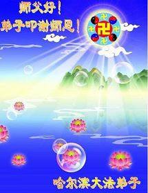 我是一九九四年得法的老弟子。虽然在摔摔打打中坚定的走到了今天,还是有很多的人心还没有修去,离大法的标准还差的很远,愧对师尊。但我相信有师在,有法在,我一定能修去人心,修出慈悲心,救度更多的众生。