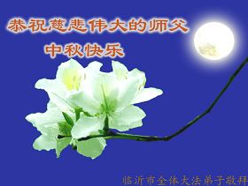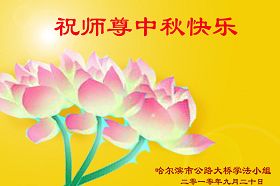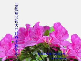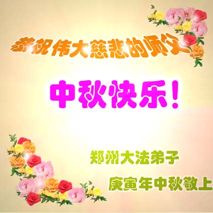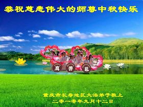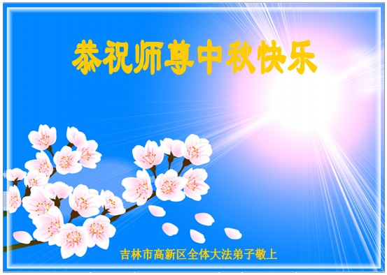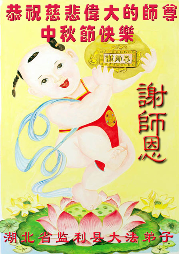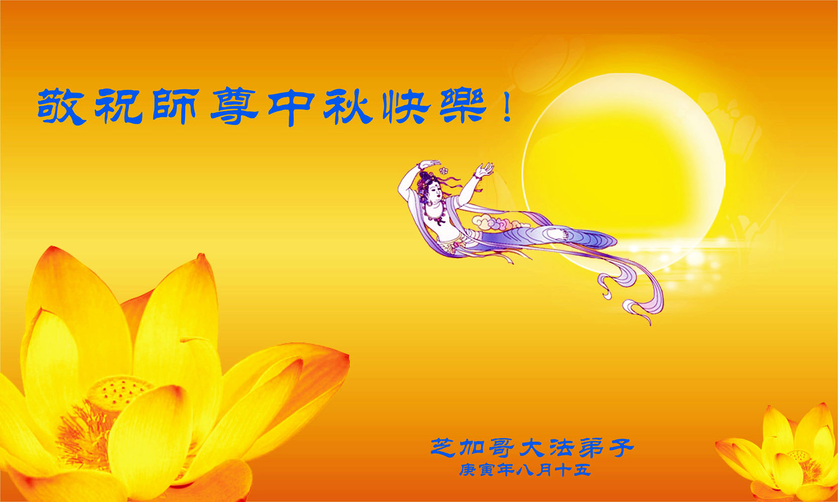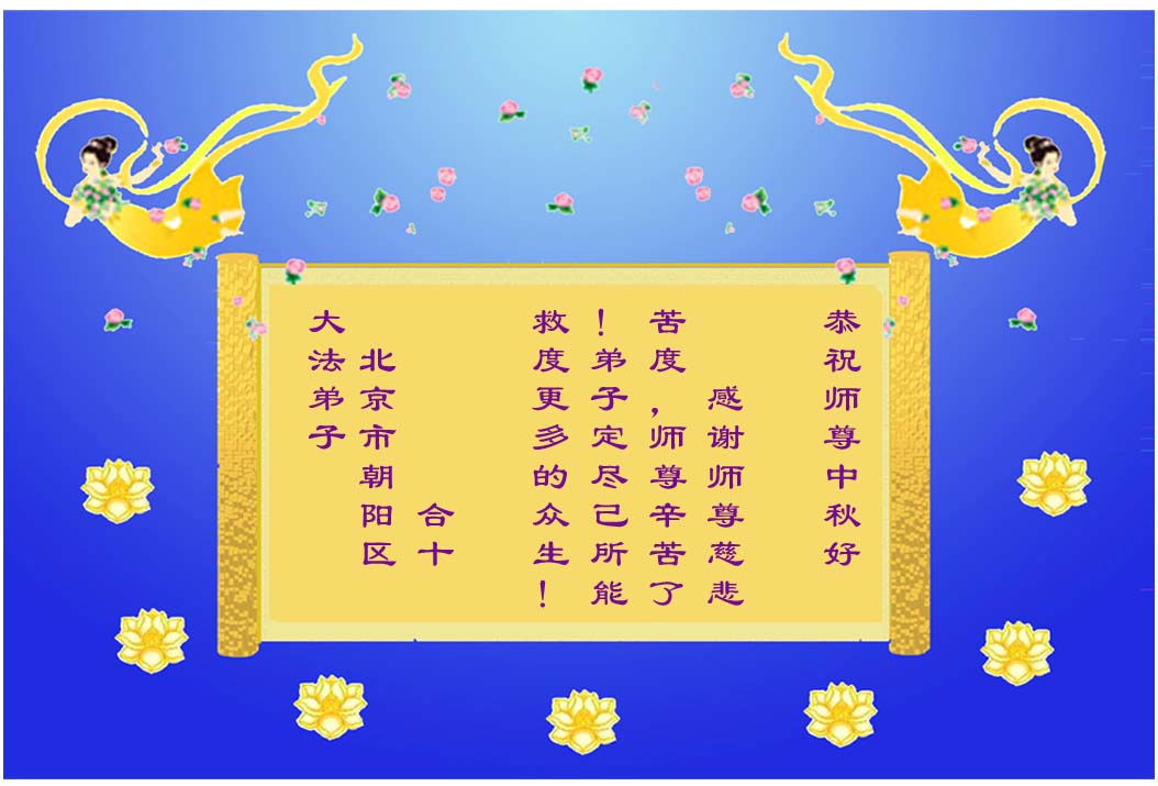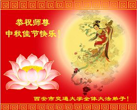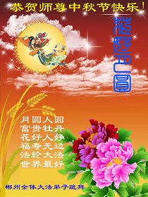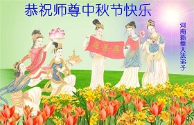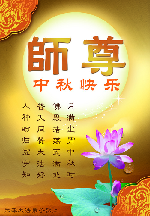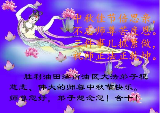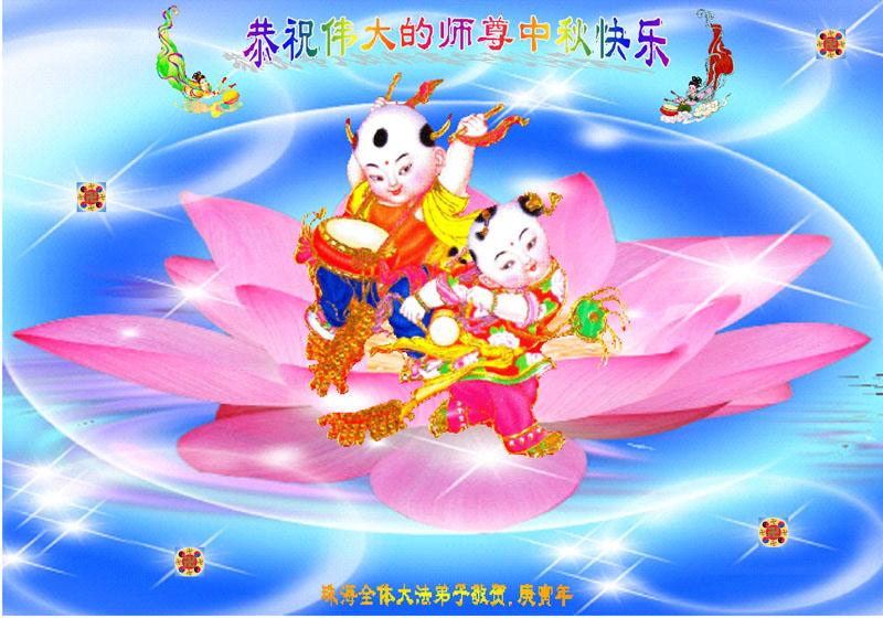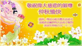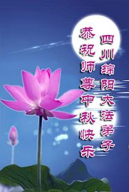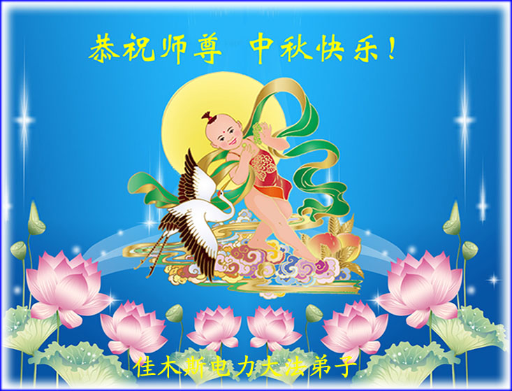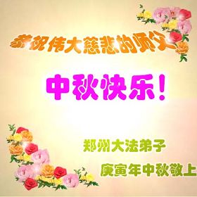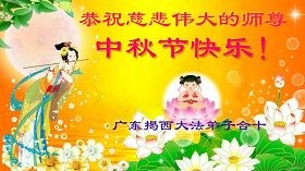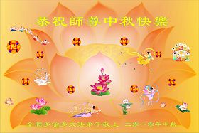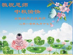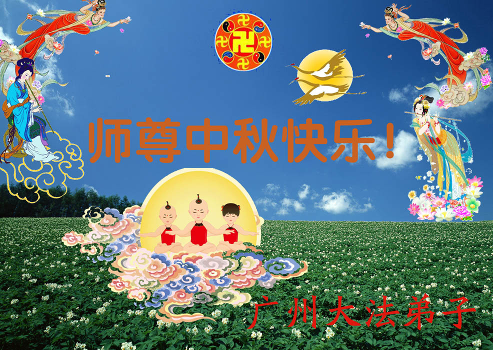 尊敬的师尊:我们很想念师尊,谨代表广州荔湾区全体大法弟子敬祝您中秋节日快乐!广州的邪恶中共正在利用亚运会的名义对全广州地区大法弟子進行疯狂迫害,但我们会按照师尊的开示,继续做好三件事,正念正行,将真相带给更多善良的人们。